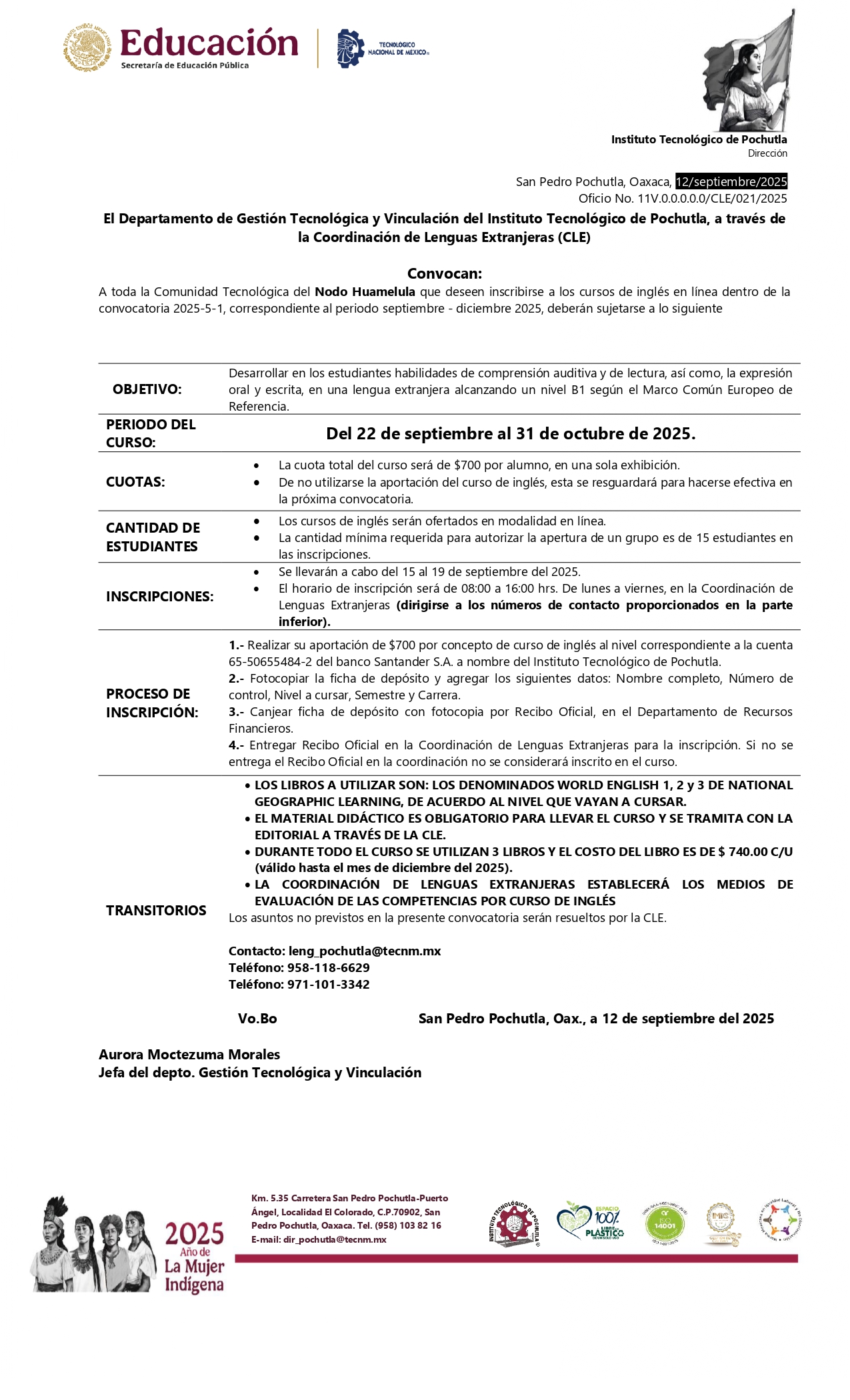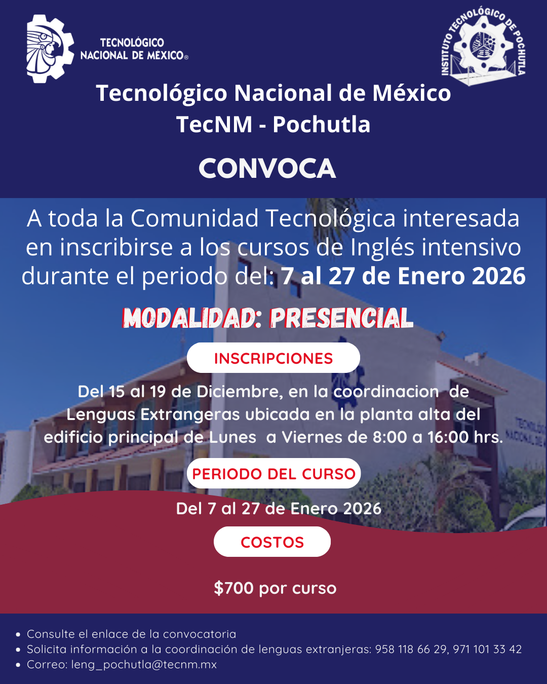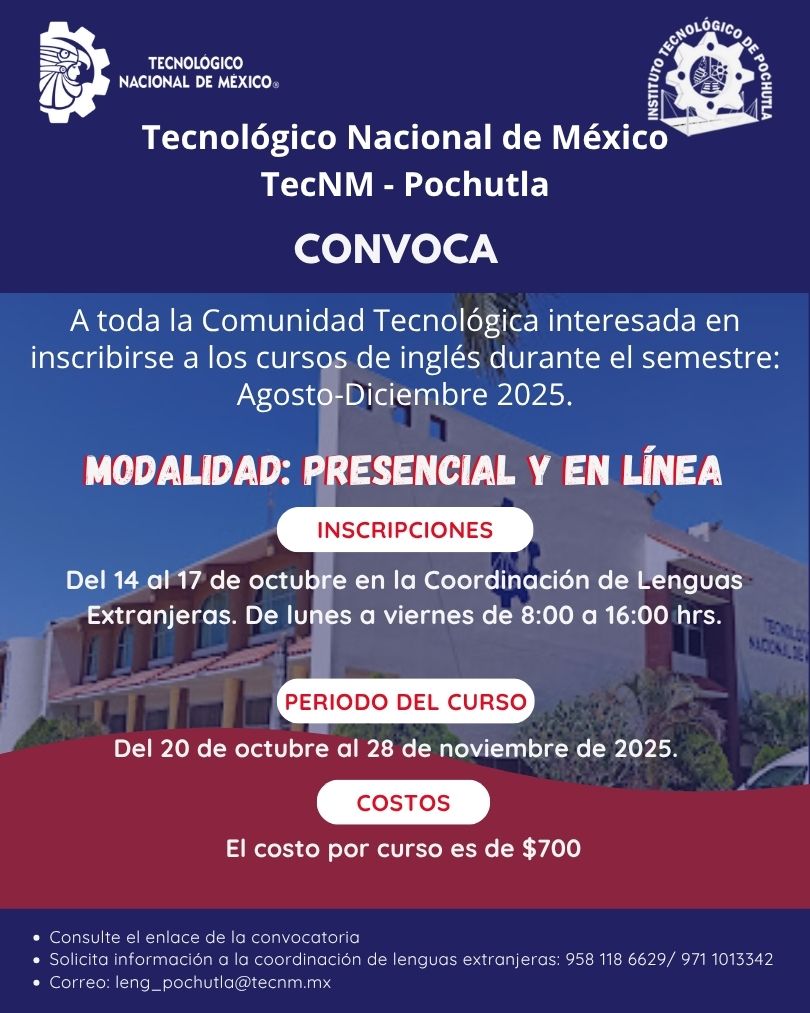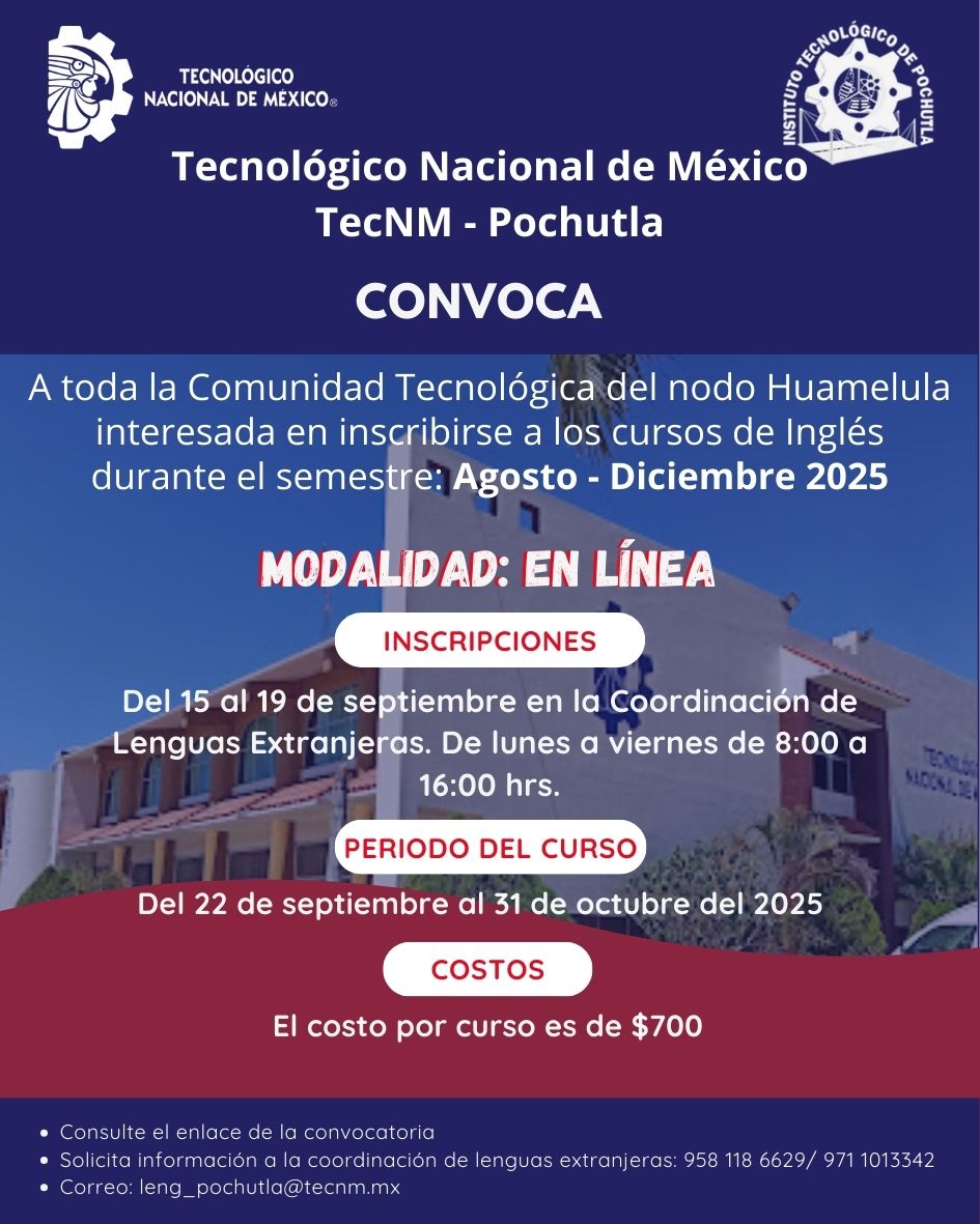 Enviar su CV al correo: leng_pochutla@tecnm.mx